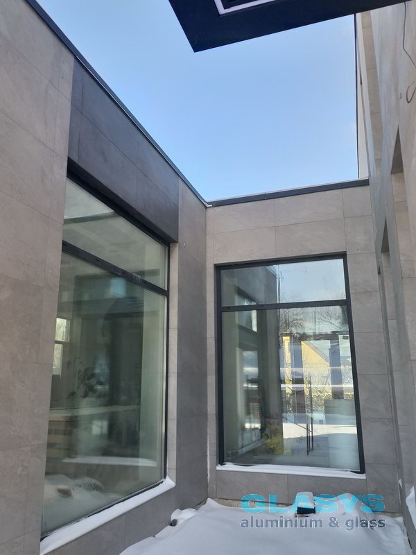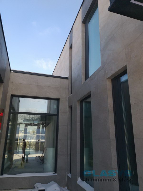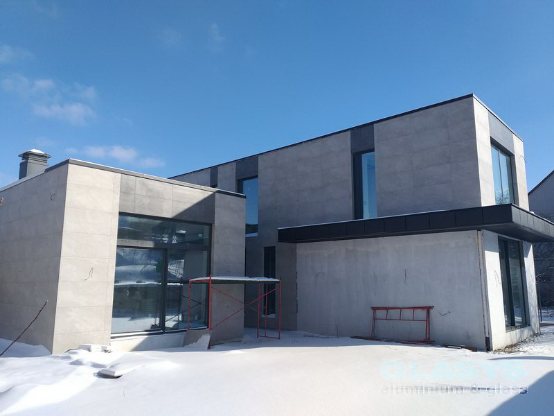 Для забезпечення гарного денного освітлення в будинку застосовано багато панорамних конструкцій за принципом мінімум профілю більше скла і світла. Такій концепції цілком задовольняють рішення з використання розсувних систем з великими стулками, а також система вентиляційних стулок, яка займає мінімум прозорої площі вікна але забезпечує якісне провітрювання приміщення в разі необхідності.