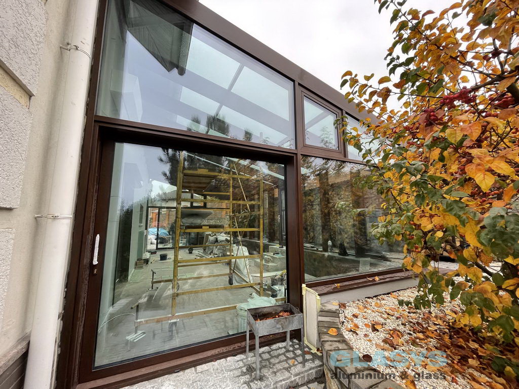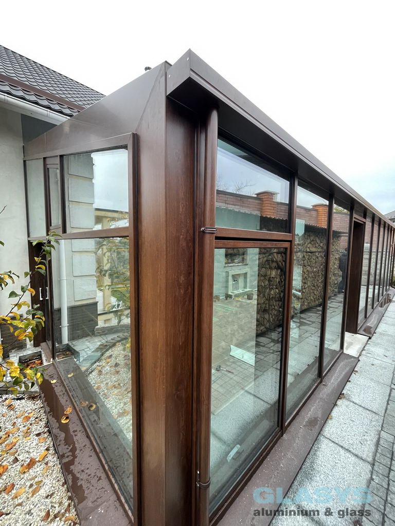 За основу проекту була вибрана алюмінієва фасадна система Reynaers CW50HI, з цієї системи ми вже зробили не один зимовий сад і нарікань від замовників ми не чули вже більше 10 років. До всього, довжина крокви більше 5 метрів, і з врахуванням снігового навантаження в нашому регіоні нам була необхідна дуже міцна стійка, а така не у всіх системах є.