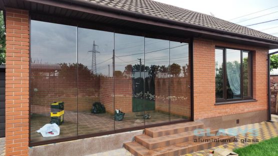 Біля сауни була відкрита терраса на якій в вітряну погоду не дуже приємно знаходитись, тому Замовником було вирішено засклити її.